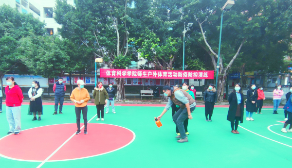 为牢固树立疫情防控“一稳皆稳、一失皆失”的理念,进一步强化底线思维、红线意识和实战能力,2月18日,体育科学学院在雷阳区篮球场开展疫情防控应急处置实战演练,体科院学院领导班子成员、院办、教务办、学工办、实验室、场地管理员及部分老师共35人参与此次演练活动。演练由庞景才书记担任总指挥,副院长赵永峰负责协调。