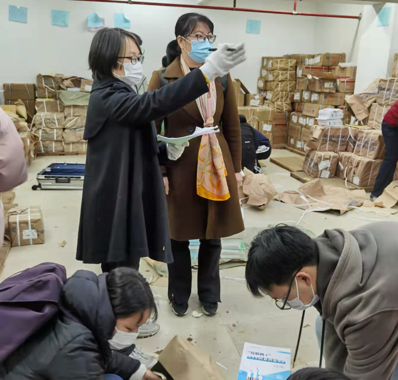 发放教材现场图