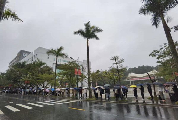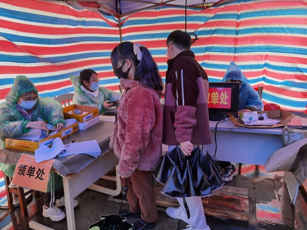 19日-20日,气温骤降,一直下雨,天冷地滑,供应商专门搭建了临时雨篷,为学生提供方便,一些学生到校太晚,供应商一直等到晚上9点才收工。