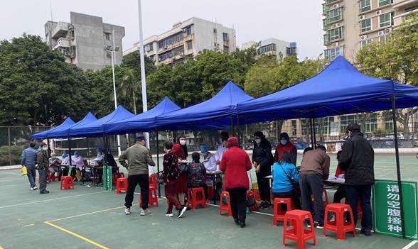 寒假春节期间,离退休人员服务中心放假不放松、过节不忘工作,积极配合湛江市赤坎区和学校防疫办专门在燕岭阁前排球场设点为老同志集中开展第三针疫苗接种工作。严格疫情管控,坚持每天指定专人按时在离退休微信群发送疫情提醒和健康填报消息,及时为老同志送上疫情最新消息,实时跟进统计老同志健康状况,协调动员老同志接种“第三针”疫苗,准确了解掌握老同志的情况和需求,切实解决好老同志所需、所困。