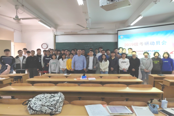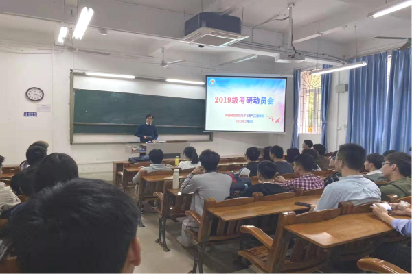2022年3月9日下午,电子与电气工程学院在榕燕楼召开19级考研动员会。会议旨在调动本院2019级学生考研热情,普及考研相关知识,并协助19级学生尽快确立目标,督促考生进入备考状态。本次动员会由学院5名学院领导、18级考研代表、19级全体学生参与,按照专业、班级会议设置了五个会场。