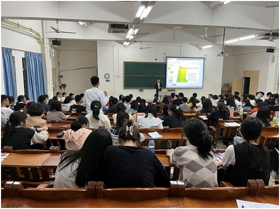 王世超从“互联网+”创新创业大赛的发展历程开始,对“互联网+”大赛的使命进行详细解读。他结合自身备赛、参赛的经历就创业项目的侧重点、评委的关注点、路演的关键点及答辩注意事项等进行深度剖析,一组组详实的数据、一张张鲜活的插图,完美诠释了一个项目一路成长的艰辛与欢乐,从商业计划书制定到团队组建,从构建商业模式到项目路演,每个环节都要精准把握,且不少于50次演练,商业计划书和ppt修改更是多达600多次,才能一路冲刺笑到最后。本次讲座在教三611室举行,300多人的教室座无虚席,师生纷纷拿出手机拍照录音,生怕漏掉关键细节,现场互动热烈,讲座结束后,师生久久不愿离去,就今年大赛的热点与王世超展开了讨论与交流。