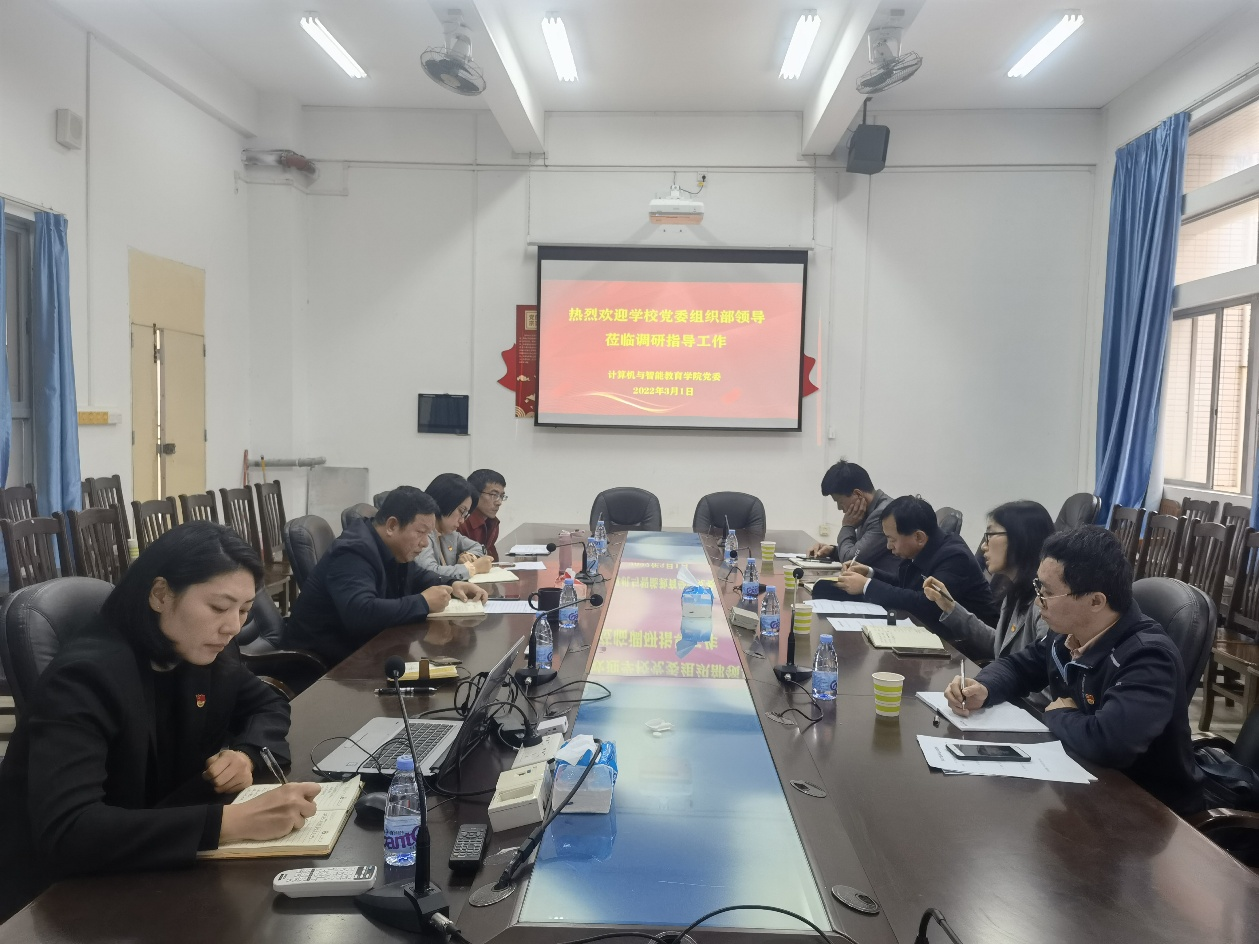 3月1日上午,校党委组织部部长赫云鹏、副部长莫琼玉及组织科工作人员一行到我院调研指导工作。学院党委李海文书记、副书记陈明娟,组织员及有关党支部书记代表参加了调研指导会。