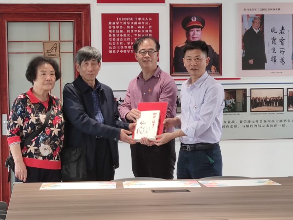 学院党委书记梁晋和院长范兆雄接受陈将军亲人赠送的红色书籍