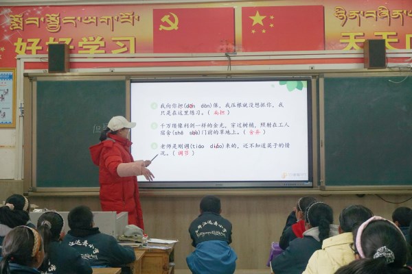 ji qi”。晚上到了县里,原来教育局已经提前贴心地订好县里的餐馆和旅馆,精心招待我们,让我们有一晚的足够休息,待第二日才到各个学校报道。第二天我们在教育局遇见了来自中山的援藏干部、老师、教育局的藏族干部、各个学校校长和援藏岑医生。其中,让人惊奇的是,我们队的李队长曾经是同为援藏的中山刘老师的学生,队长一眼就认出了恩师刘老师,我们都感叹万分,谁能说这圣洁的地方没有神奇的缘分呢?初识不知育中意,再见已是育中人。