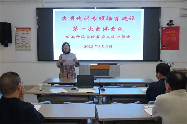 参与本次会议的领导与嘉宾有广西师范大学数学与统计学院院长张军舰教授、副院长卢家宽教授、院长助理梁鑫和晏振副教授,我校数计学院主持工作副院长栾姝、副院长吴勇旗和于广龙、副书记全光华及应用统计专硕学位点全体专任教师。