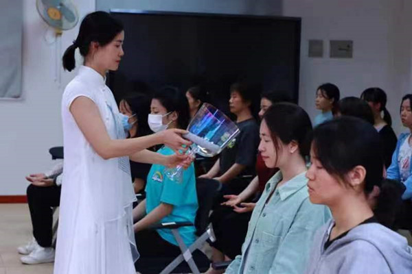 在交流互动环节,师生们纷纷提问,也谈了颂钵的体验感受。莫丹表示,颂钵音疗是一种自然而有效的释放压力的疗法,每一次冥想,每一场练习,都是短暂的休息,更是一个美好的开始。希望在日常生活中,每一个人都能找到适合自己的方法,释放压力,净化心灵,提升幸福感。