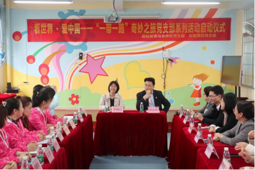 4月18日上午,国际交流与合作处党支部与后勤第四党支部联合开展的“看世界·爱中国--‘一带一路’奇妙之旅”主题系列活动启动仪式在学校附属幼儿园举行,国交处党支部和后勤第四支部的全体党员及教职工参加了本次活动。