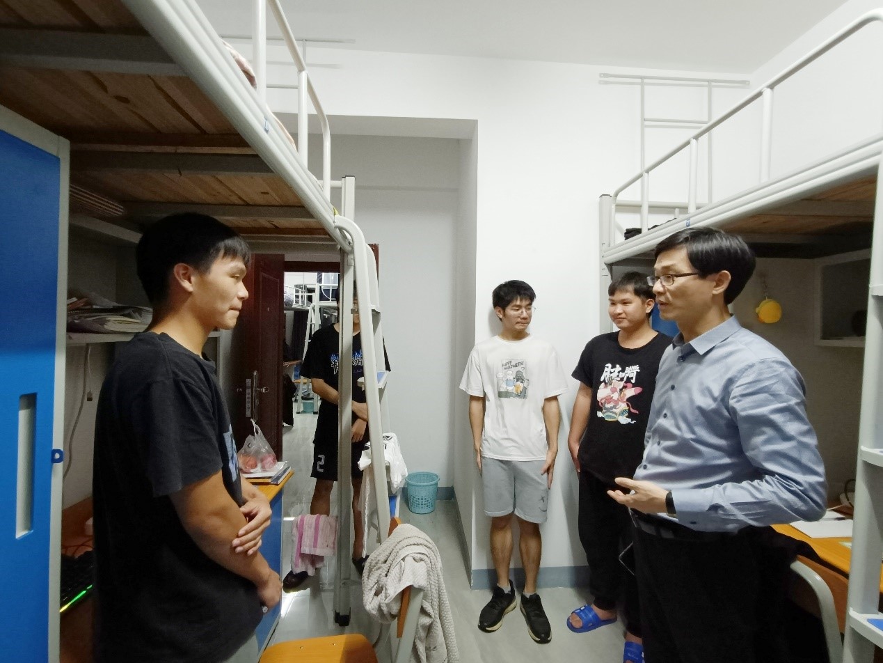 为了解我院在校学生疫情期间学习生活情况,督促学生保持良好宿舍学习环境,营造良好学风氛围,4月11日至4月19日,学院党委副书记陈海东与辅导员黄秋洁、贾冰妮一行人,先后深入20级,21级学生宿舍开展学风调研活动,亲切探望在校学生。