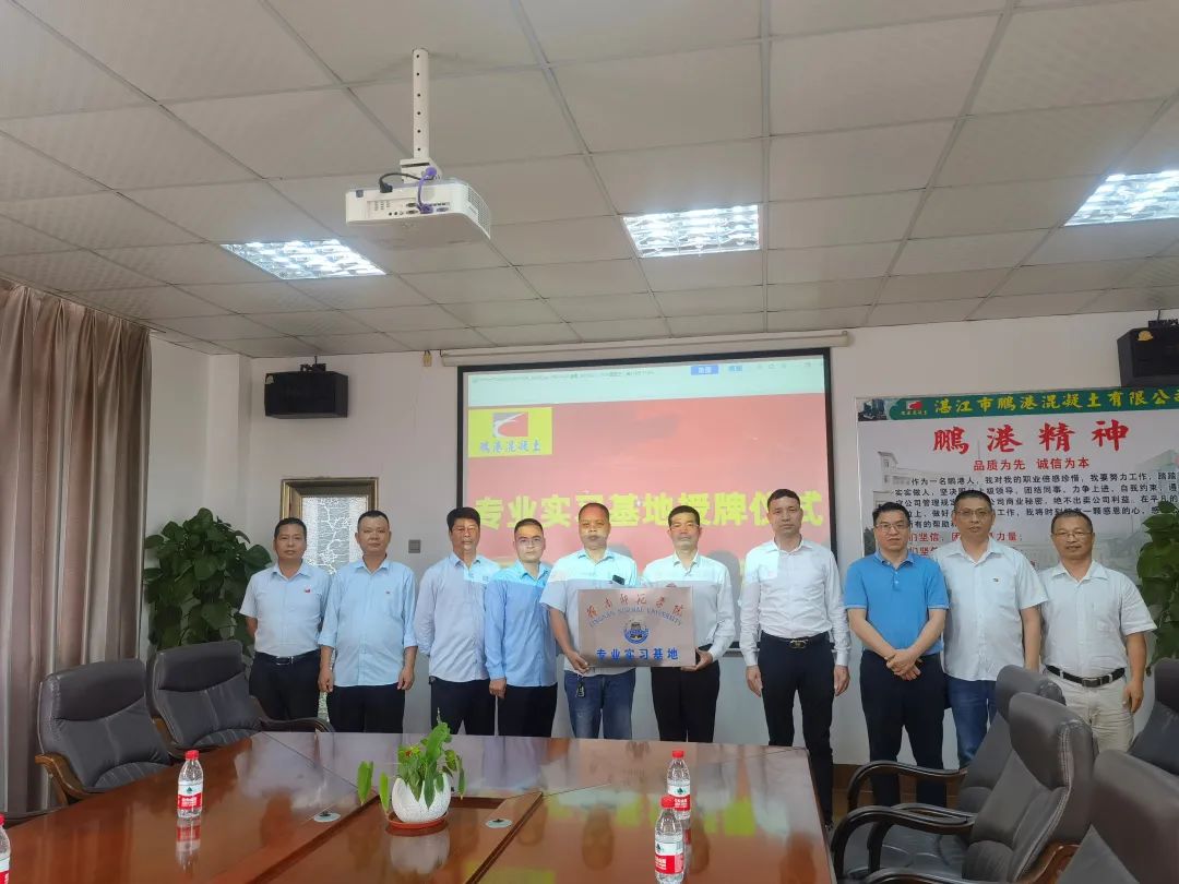 沈乃湾工介绍公司情况时指出,湛江市鹏港混凝土有限公司是公司董事长的第八家企业,公司一直注重与高校建立友好合作关系,公司目前和未来几年都需要很多高技术人才;目前公司面临的一些技术难题,譬如石粉潮湿后难以下料,海洋防腐混凝土的性能分析,高性能的特殊混凝土研发等,也亟需高校专业技术人员支持解决。沈乃湾表示,今天专业实习基地的揭牌使企校合作迈开第一步,接下来企业需更进一步加强与高校合作,就生产技术难题共同攻关,借高校专业力量,推动企业持续创新、健康稳定、高质量发展。招总发言希望企校双方合作能给公司带来更多的发展变化,双方加强合作交流,集中优势资源,抓实抓细,多出亮点、争创特色。