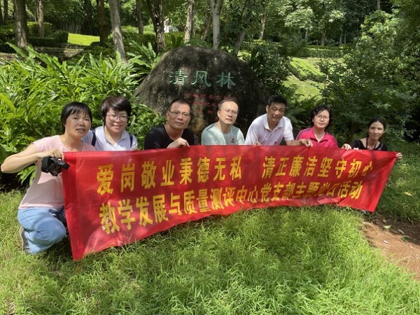 为深入贯彻落实中共中央办公厅《关于加强新时代廉洁文化建设的意见》精神,结合我校《关于开展廉洁文化进校园活动的通知》的要求,扎实推进党风廉政建设,教学发展与质量测评中心党支部于5月28日到湖光岩“清风林”廉政教育基地开展“爱岗敬业秉德无私、清正廉洁坚守初心”的主题党日活动。