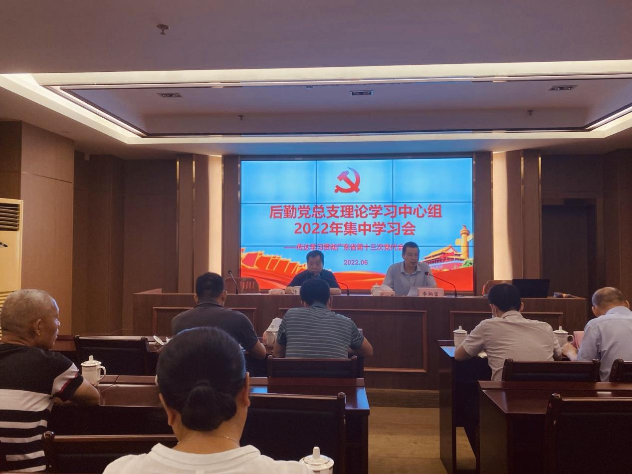 6月1日,后勤党总支在园府酒店3号会议室召开理论学习中心组集中学习(扩大)会,传达学习贯彻中国共产党广东省第十三次代表大会精神。后勤党总支领导班子、各支部书记以及后勤各科室与实体负责人参加会议。