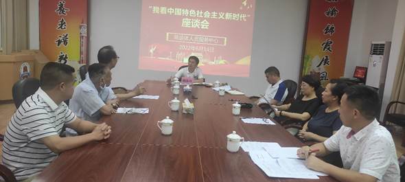 6月14日下午,根据广东省委老干局通知精神,离退休人员服务中心在离退休会议室召开“我看中国特色社会主义新时代”座谈会,认真听取老党员代表对中国特色社会主义新时代的心声和意见建议。会议由离退休中心党委书记、主任欧海清主持,冯汝智、凌志忠、郭雅洁、陈春常等4名离退休老党员代表和相关工作人员参加会议。