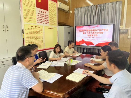 郭和才传达学习了广东省第十三次党代会精神,认为报告全面总结了广东省过去五年的新进展新成就,深入分析面临形势,明确提出今后五年的九项重点工作任务,是指导广东未来一个时期工作的施工图、任务书。强调全体人员在深入学习过程中要深刻领会省第十三次党代会的丰富内涵和精神实质,深刻领会省党代会的主题,忠诚拥护“两个确立”,坚决做到“两个维护”,牢记为党育人、为国育才的初心使命。