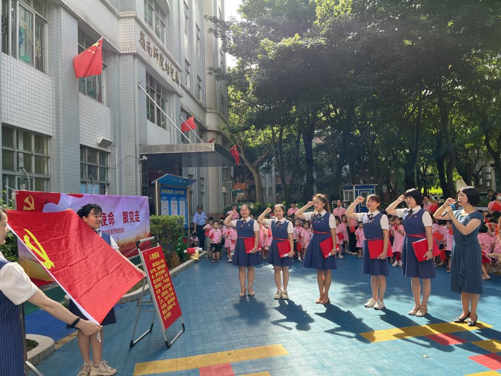 为庆祝中国共产党成立101周年,迎接党的二十大召开,引导广大师生听党话、跟党走,激发师生爱党爱国热情,将红色基因根植于心。7月1日上午,幼儿园以“铭党恩 守使命 跟党走”为主题,开展了特色鲜明,形式多样的建党101周年主题党日活动,以诗朗诵、即兴挥毫、合唱等形式共庆党的生日,向我们伟大的党献上我们最诚挚的祝福。