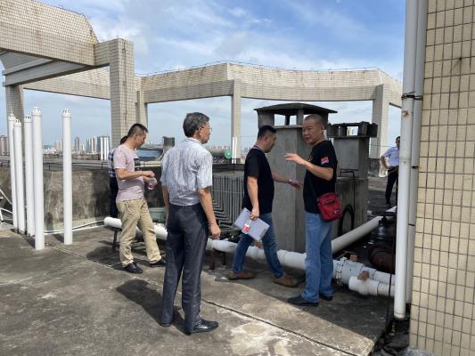 赤坎区住建局邓新红副局长带领相关专家首先来到燕岭阁,从地下室上到楼顶,查看了消防设备,进入消防监控室,检查了消防设施运转情况,听取了学校安保部门对消防设施使用管理情况介绍。在听取学校情况介绍后,邓新红副局长对我校近年来重视工程消防工作,积极投入燕岭阁消防整改的态度给予了充分肯定。他表示,针对燕岭阁消防问题整改,要严格依照相关建筑设计消防规范,遵守基本建设程序,扎扎实实认真推进,确保燕岭阁消防整改工作早日完成,并表示,区住建局会尽力指导学校做好燕岭阁消防整改工作。