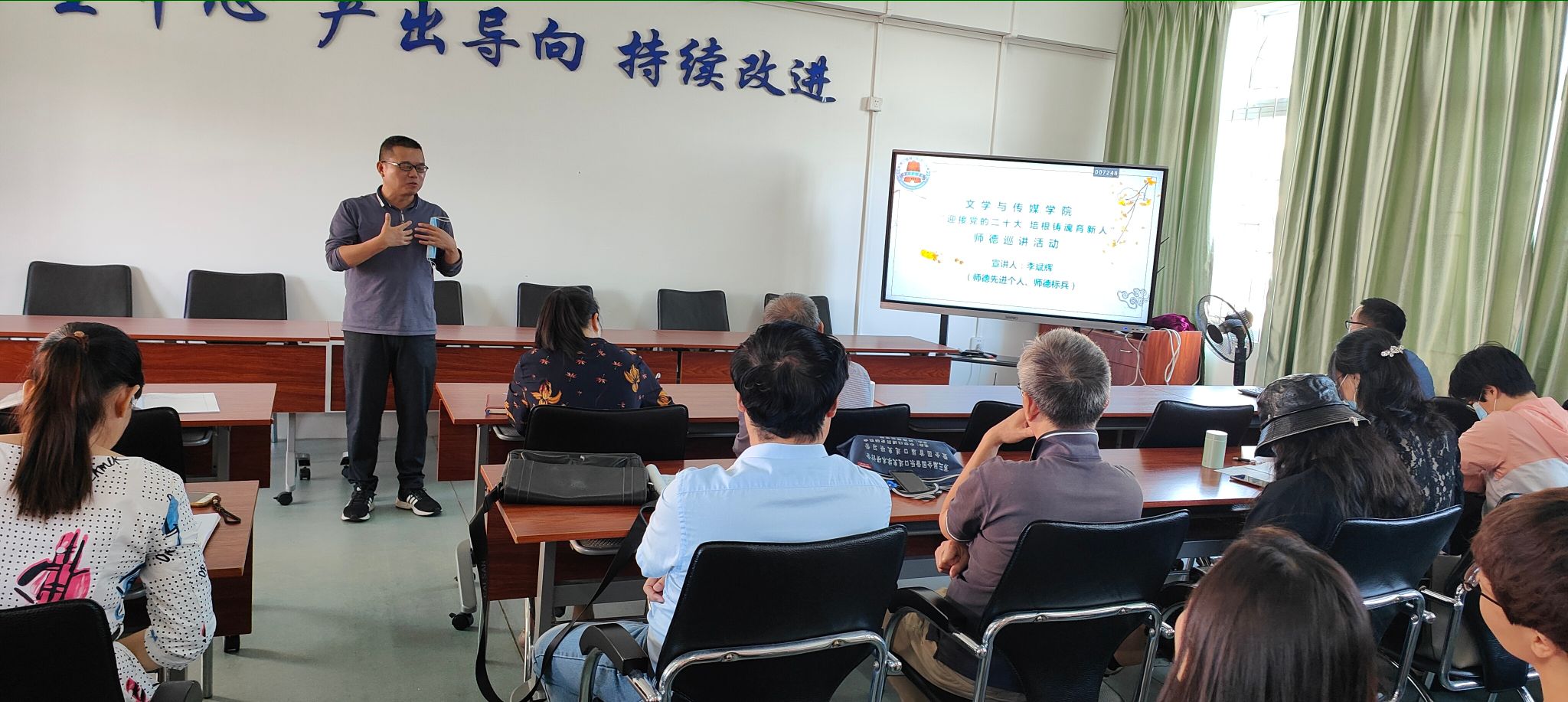 为进一步落实师风师德建设长效机制,切实提高教师职业道德素养,激发全院教师坚定理想信念、厚植爱国情怀、涵养高尚师德,10月12日,文学与传媒学院党委组织全体教师开展了“迎接党的二十大 培根铸魂育新人”主题师德巡讲活动。本次师德巡讲主讲人由文学与传媒学院副院长、学校师德标兵获得者李斌辉教授开讲。