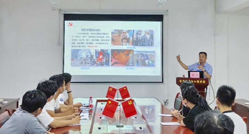 10月11日晚,食品科学与工程学院党委书记邱飞于第五教学楼B栋318室以《知史爱党、知史爱国,增强新时代青年大学生的使命和担当》为主题给2022年国际班同学讲思政第一课,勉励青年学生加强“四史”学习,了解世情国情党情,锤炼理想信念,增强新时代青年大学生的使命和担当,扣好人生的“第一粒扣子”。学院辅导员以及2022级烹饪国际班学生聆听本次思政第一课。