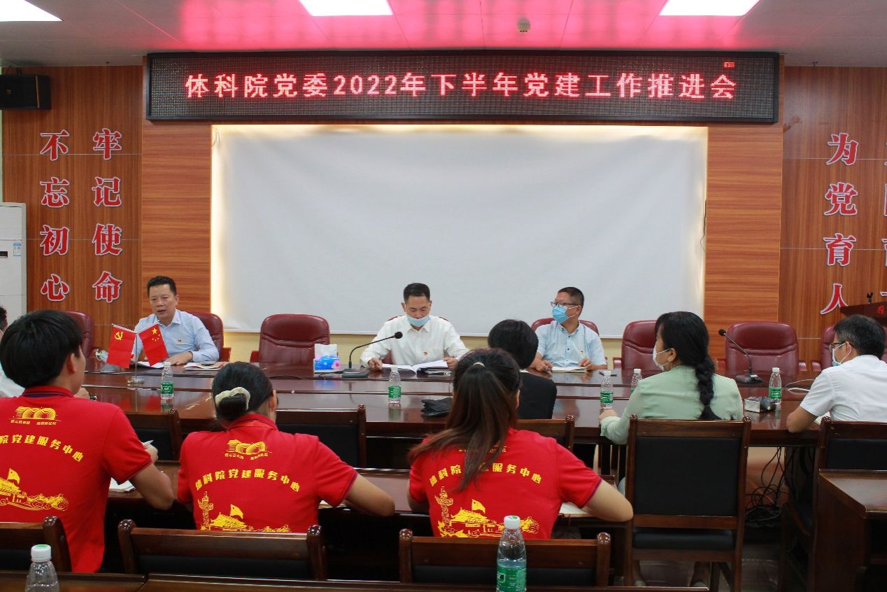10月16日中午,体育科学学院党委于会议室组织召开2022年党建工作推进会。会议由体育科学学院党委书记庞景才主持会议,正处级组织员黄增、体育科学学院党委副书记屈云出席本次会议,各党支部书记、支部委员参加会议。