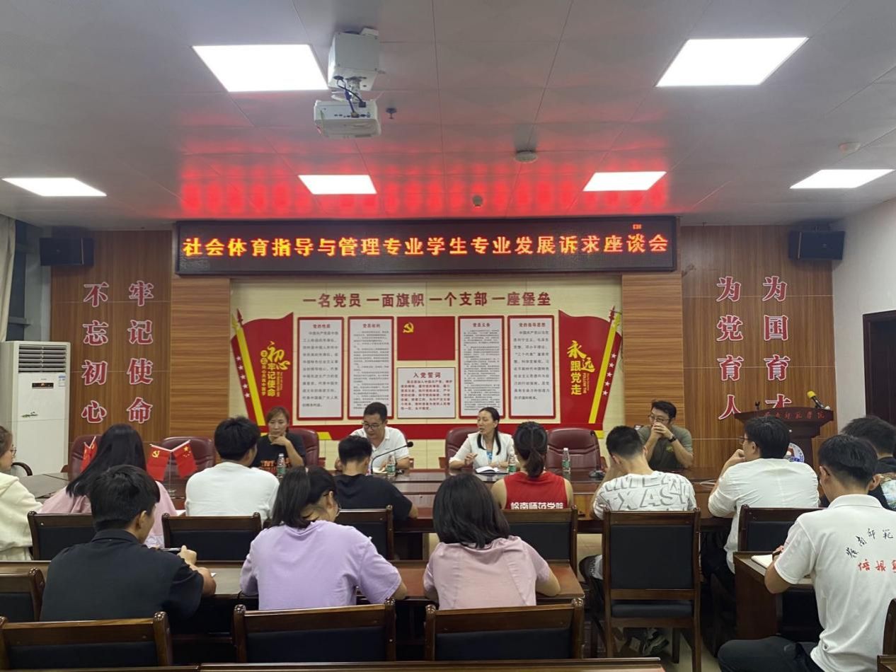 10月17日晚,体育科学学院举办社会体育指导与管理专业学生专业发展诉求座谈会,加强专业建设,深入了解学生对专业发展的诉求。体育科学学院副院长梁立启出席会议,社会体育指导与管理系主任谢琴、副主任朱晓娜、陶旼以及社会体育指导与管理专业学生代表参加座谈会。
