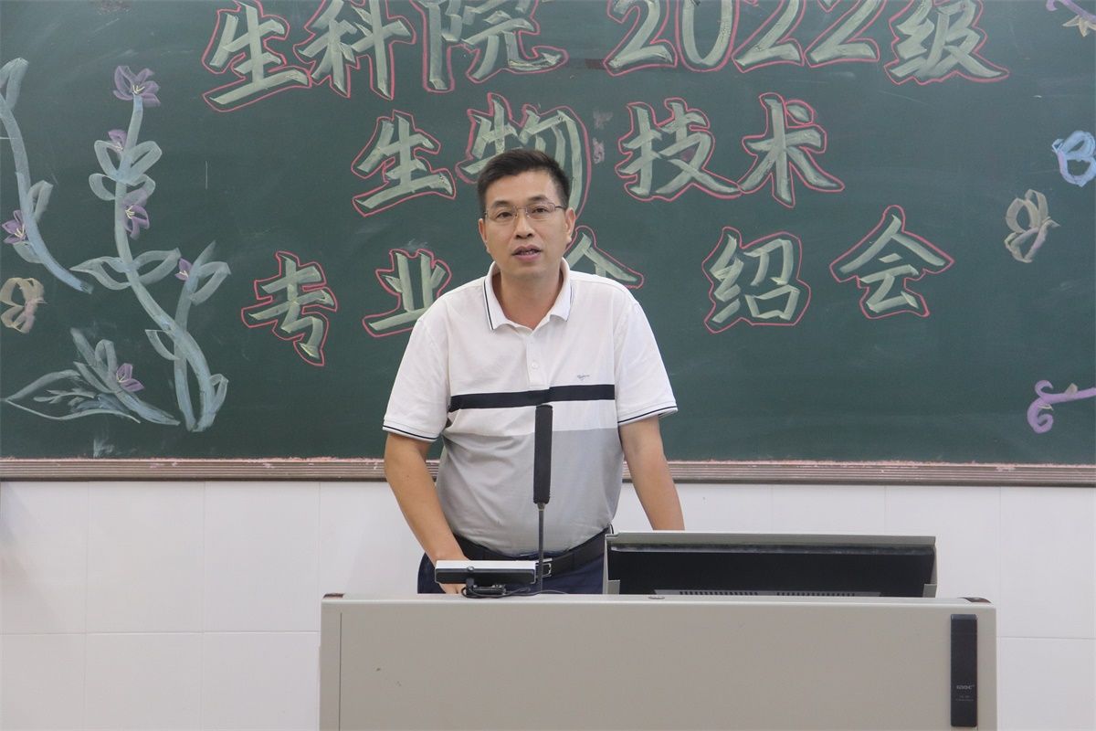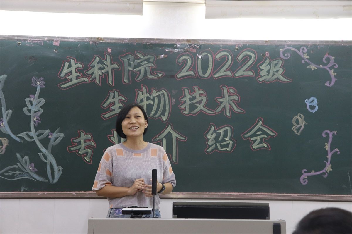 为引导2022级生物技术专业学子深入了解所学专业的基本情况,培养新生对本专业的学习兴趣,增强新生学习的信心和动力,同时树立优良学风,形成良好学习氛围,10月24号晚,生科院于燕雷楼C栋202室召开2022级生物技术专业介绍会。生科院党委书记李发武老师、生物技术系主任冯瑜菲老师、生物技术专业教师、往届学生代表及2022级生物技术专业全体新生参加此次专业介绍会,会议由冯瑜菲主持。