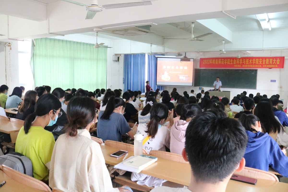 活动上,李永泼为生科院师生开讲了一场令人印象深刻的消防安全教育讲座。他以近期发生在广西的学生公寓楼消防事故等案例为例,教导大家发生类似火灾时,应该如何根据火场情况选择逃生自救。他指出火灾现场伤亡最多的吸入过量的高温有毒烟雾,火场中烟雾的蔓延是非常快速的,当火势不可控制且单一安全逃生通道因火灾受阻时应保持冷静,不可轻易选择向上逃生更不可盲目穿越火场,应当选择紧闭门窗阻隔烟火同时向外求救等待救援。最后,他希望同学们要学以致用、能学有所用,增强火灾中的互助自救能力。
