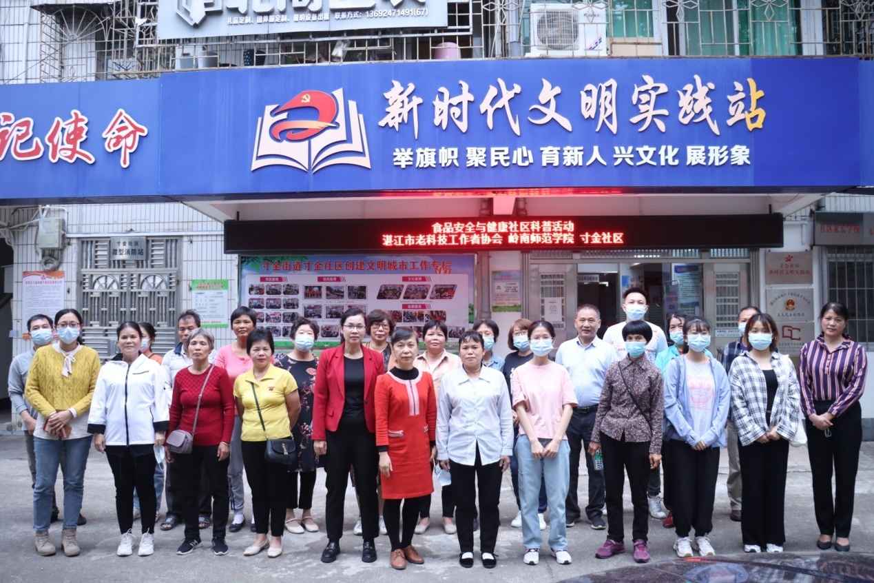 为了推动老年人健康知识科普进社区,普及食品安全与健康的知识,提高老年人的健康素养,11月3日下午,湛江市老科技工作者协会(以下简称为湛江市老科协)2022年度湛江市科普经费活动项目(老科协)——食品安全与健康社区科普活动于湛江市赤坎区寸金街道寸金社区举行,此次活动采取线上线下同时进行的方式开展。参与本次活动的有生命科学与技术学院陈道海教授(湛江市老科协副会长)、陈燕教授(湛江市红树林基金会副会长、湛江市老科协会员),食品科学与工程学院陈冰教授(湛江市老科协会员)、以及2020级食品科学与工程专业一、二班学生,活动由陈冰主讲,寸金社区书记梁红丽主持。