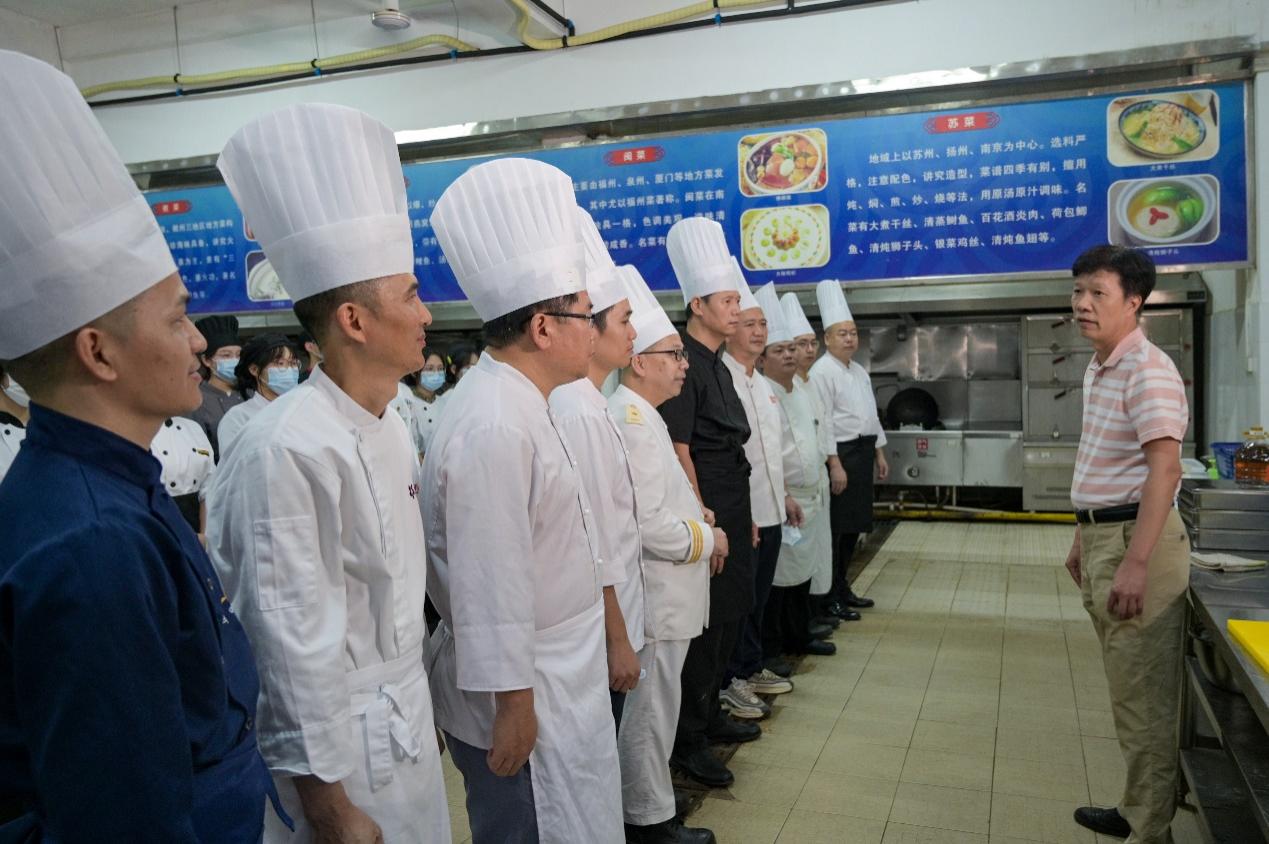 活动开始,郑侯锦向烹饪大师们强调活动的重要意义。他指出粤菜烹饪大师、食品科学与工程学院烹饪与营养教育专业师生汇聚,大家的任务是以湛江盛产的金鲳鱼和对虾为食材,充分挖掘智慧、发挥创新精神,共研烹饪方法,烹出湛江舌尖上的美味;同时,他表示,作为在广东首办该本科专业的院校,以此为新起点,要坚持落实立德树人根本任务,以服务经济社会发展促专业学科建设,发挥学科专业优势,依托省级“粤菜师傅”大师工作室、湛江预制菜烹饪与营养工程技术研究中心、湛江海鲜食材产学研示范基地、中国(湛江)海鲜菜研发中心等科研平台,研发更多色、香、味、美、康的金鲳鱼和对虾菜品,擦亮湛江市的两个国字号品牌“中国金鲳鱼之都”、“中国对虾之都”,为推动湛江菜品牌高质量发展服务。