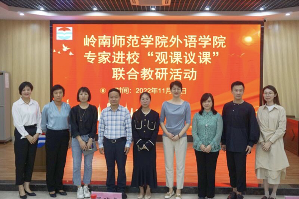 11月14日下午,外国语学院专家教师团队进校“观课议课”联合教研活动在湛江二中霞山校区举行,本次活动的主题是“基于群文阅读的课内外教学一体化”。这是学院U-G-S外语教育教研共同体实施基础教育帮扶高质量发展的一次重要研讨活动。外国语学院吴晓春副院长出席会议,刘玉梅教授(英语专业负责人)、梁天柱副教授、蔡秋文老师、黎璇老师、外国语学院驻湛江二中实习生、湛江二中领导及英语科组全体教师参加活动。