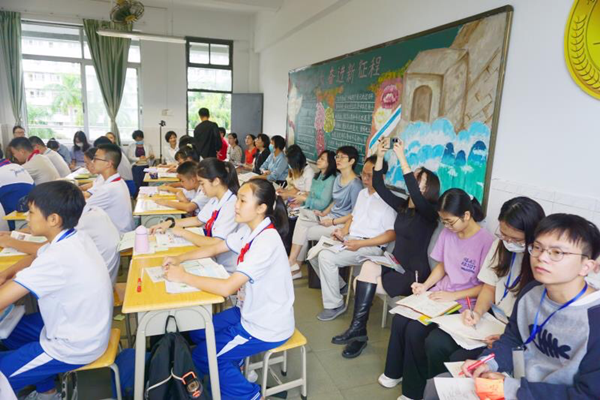 观课后,全体人员召开了研讨会,湛江二中霞山校区校长许德海向专家教师团队介绍学校的基本情况,表示学校将继续基于常态课四环两效(导、议、讲、评,老师讲课有效、学生听课有效)公开化进行探讨,共同促进课堂教学改革,让课堂更高效。吴晓春向湛江二中英语学科组成员介绍了外国语学院的师资队伍、人才培养、学科专业发展情况,表示学院将大力支持共同体活动,实现学院发展和中学教研水平提升的双赢。