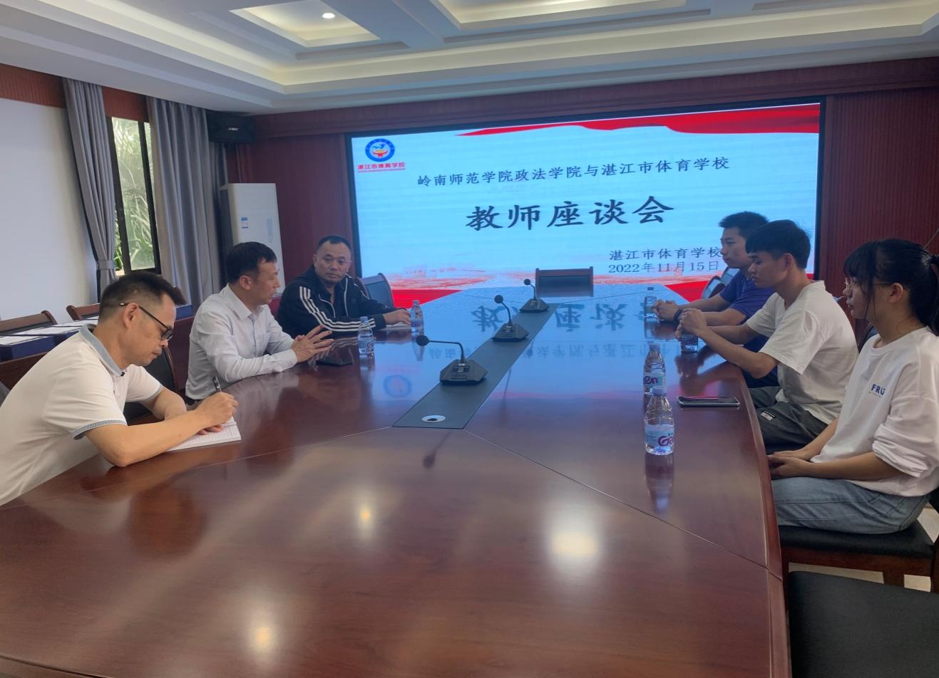 11月15日下午,学校法政学院副院长娄伟到湛江市体育运动学校进行期中实习检查工作。本次实习检查以座谈会的形式开展,娄伟携法政学院的实习生以及湛江市体育学校相关科室负责人参加了本次座谈会。