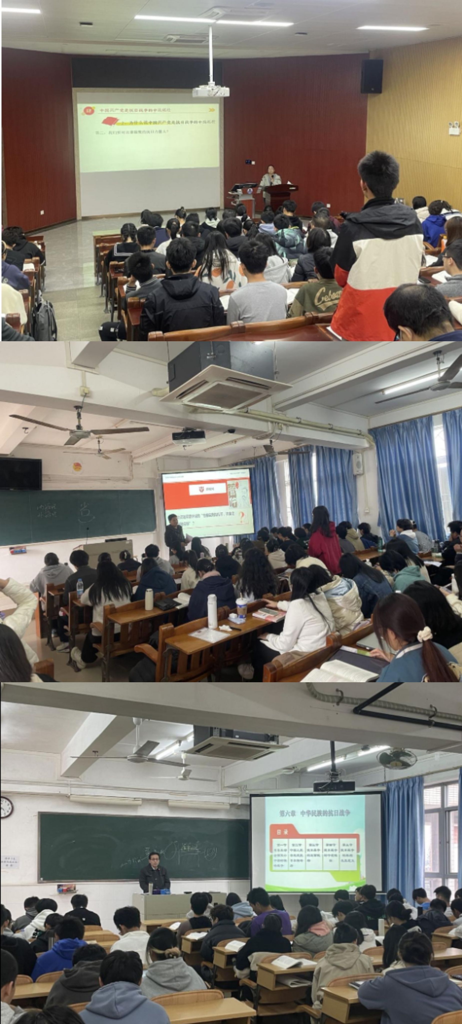 教师张莹以《抗日战争的反思与启示》为题,从“什么是砥柱”、“为什么说中国共产党是抗日战争的中流砥柱”、“人民选择了谁”三个方面给大家讲解了中国共产党在抗日战争中的中流砥柱作用;朱培源紧密结合党的二十大精神,以《全面建设社会主义现代化国家》为题,重点讲了中国式现代化的特质,以中国式现代化推进中华民族伟大复兴等内容;黄民文运用短视频切入主题,以《中华民族的抗日战争》为题,结合丰富的史料向大家讲述了革命先辈不屈不挠的抗战精神,告诫同学们要铭记历史,自强不息,砥砺奋进。