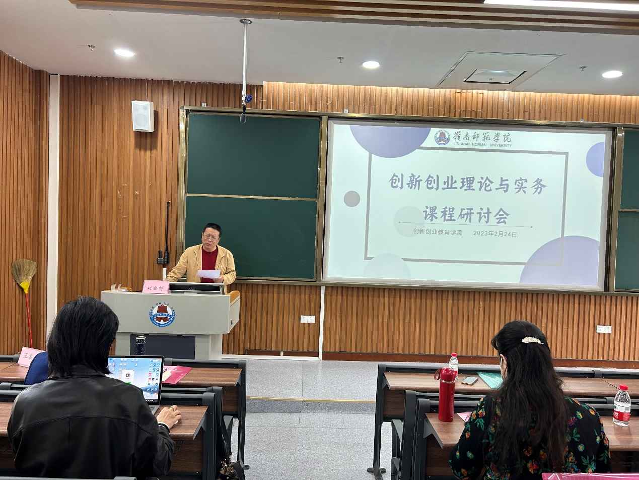 2月24日下午,创新创业教育学院在第五教学楼F-103教室召开课程研讨会,创新创业教育学院副院长刘金祥主持会议,2022-2023学年春季学期《创新创业理论与实务》课程30多名任课教师参加了研讨。
