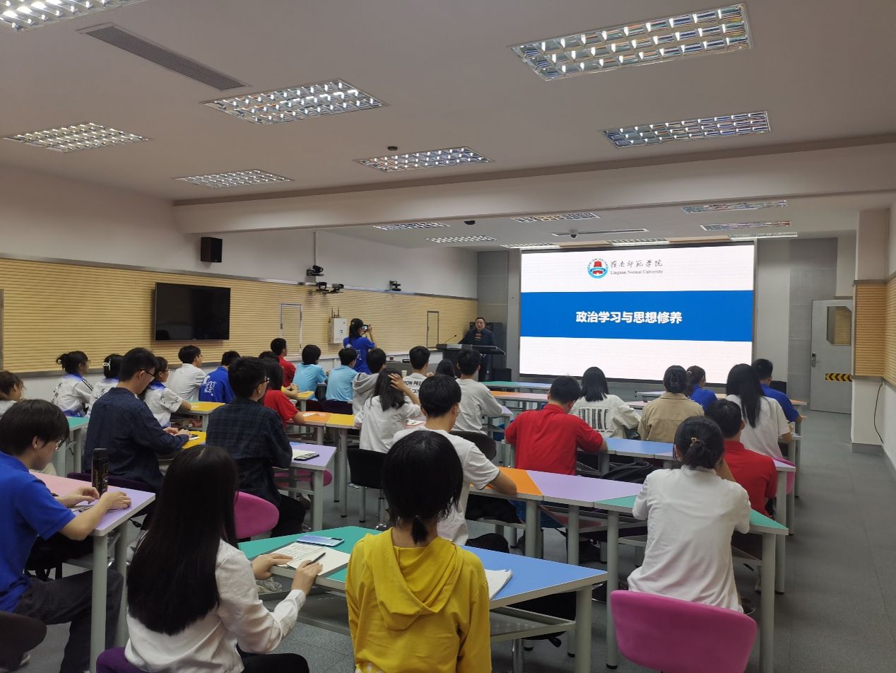 李海文以“政治学习与思想修养”为题向同学们讲述了作为党员和学生干部加强政治理论学习和提高思想修养的重要性,通过详细阐释“政治”与“思想修养”的内涵,勉励同学们将自身发展与学校发展相融合,发挥主人翁精神,做到知校、爱校、荣校、兴校,党员和团员要积极学习政治理论知识,强化个人修养,拓宽自身事业,共同推动学院各项事业高质量发展。他还勉励学生要牢记习近平总书记对青年的嘱托和殷切期望,爱党爱国,不断擦亮爱党、爱国、爱人民、爱社会主义的青春底色,刻苦学习,踔厉奋发、勇毅前行,为全面建设社会主义现代化国家积极贡献力量。