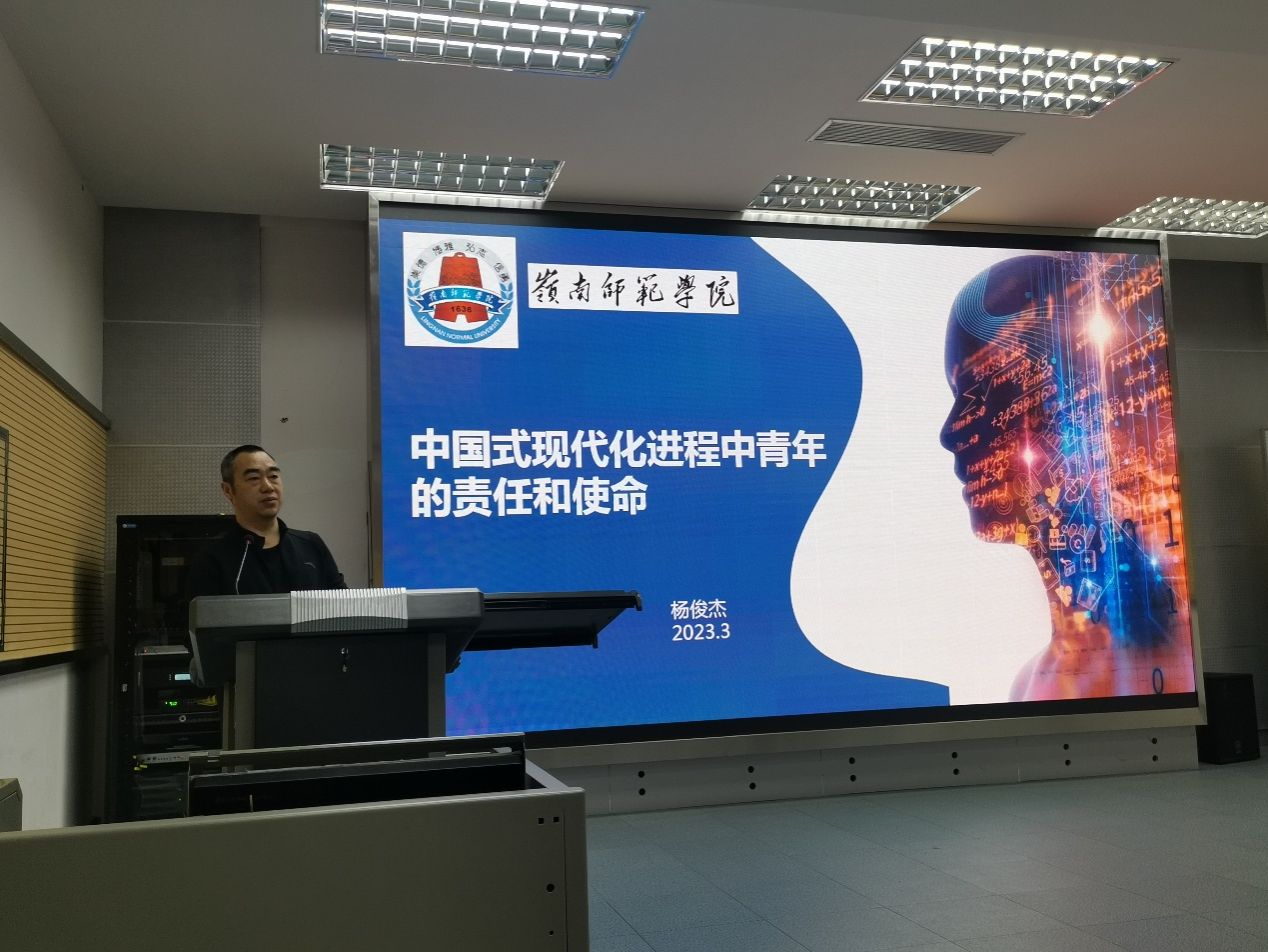 杨俊杰以“中国式现代化中青年的责任和使命”为题向同学们详细阐释了中国式现代化的内涵特征,包括本质要求、理论依据以及主要内容,并对比了中国式现代化与西方国家现代化的差异,通过各种案例阐明了中国式现代化的世界意义。他希望同学们勇于做推进中国式现代化的参与者、奉献者、实践者,从小事做起、从现在做起,学好专业知识,夯实专业能力,做时代的奋进者、开拓者、奉献者,用青春和汗水创造出新征程新奇迹。杨俊杰指出,作为当代大学生,大家要始终把青春融入中国式现代化的火热实践,为全面建设社会主义现代化国家贡献智慧和力量,同学们要坚定信念、紧跟党走,也要铭记初心、勇担使命,更要刻苦学习、矢志创新。