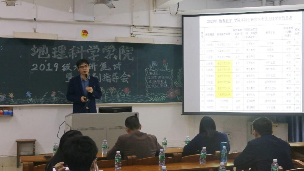 3月15日晚上,地理科学学院于第三教学楼203室召开2023年考研面试暨调剂指导会。学院党委副书记王雄艺、副院长尚志海、地理科学系主任陈碧珊、信息系统系主任罗松英,考研导师梁立锋、范安出席了本次会议。