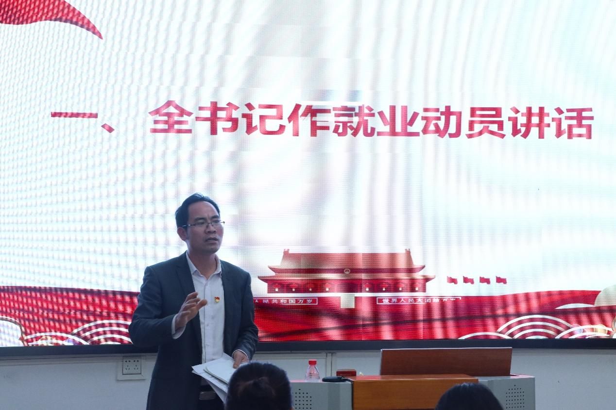 会上,全光华作就业动员讲话。结合学院实际情况,他提出三点建议:一是先就业后择业,做带头就业先锋。学生党员要积极做好带头作用,明确个人定位,积极主动就业。二是发挥自身优势,做带动就业先锋。已经就业的同学,鼓励并带动同学们参加招聘会,还未就业的同学要抓紧行动起来,在核心能力方面下功夫。三是了解形势政策,做宣传就业先锋。学生党员还要充分发挥在同学中的影响力和号召力,展现“一个党员就是一面旗帜”的先锋示范作用,协助学院开展就业工作,积极宣传就业政策,帮助同学调整期望、准确定位、对接资源、顺利就业。