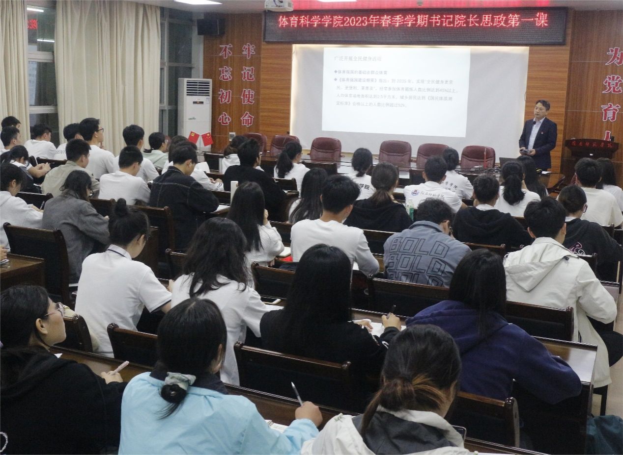 3月15日晚上,体育科学学院在体育馆会议室召开2023年春季学期书记院长第一堂思政课,旨在提高新时代青年大学生的政治修养和思想觉悟。体育科学学院党委书记庞景才、院长王海涛出席并讲话。