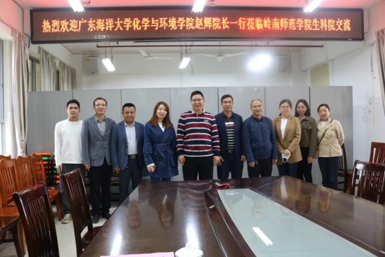 3月31日上午,广东海洋大学化学与环境学院院长赵辉、资源与环境系主任邓培昌、资源与环境系教授钟来元一行来我院开展交流,生科院党委书记李发武出席并主持会议,副院长王锂韫、海洋资源开发与技术系教师参加交流座谈会。