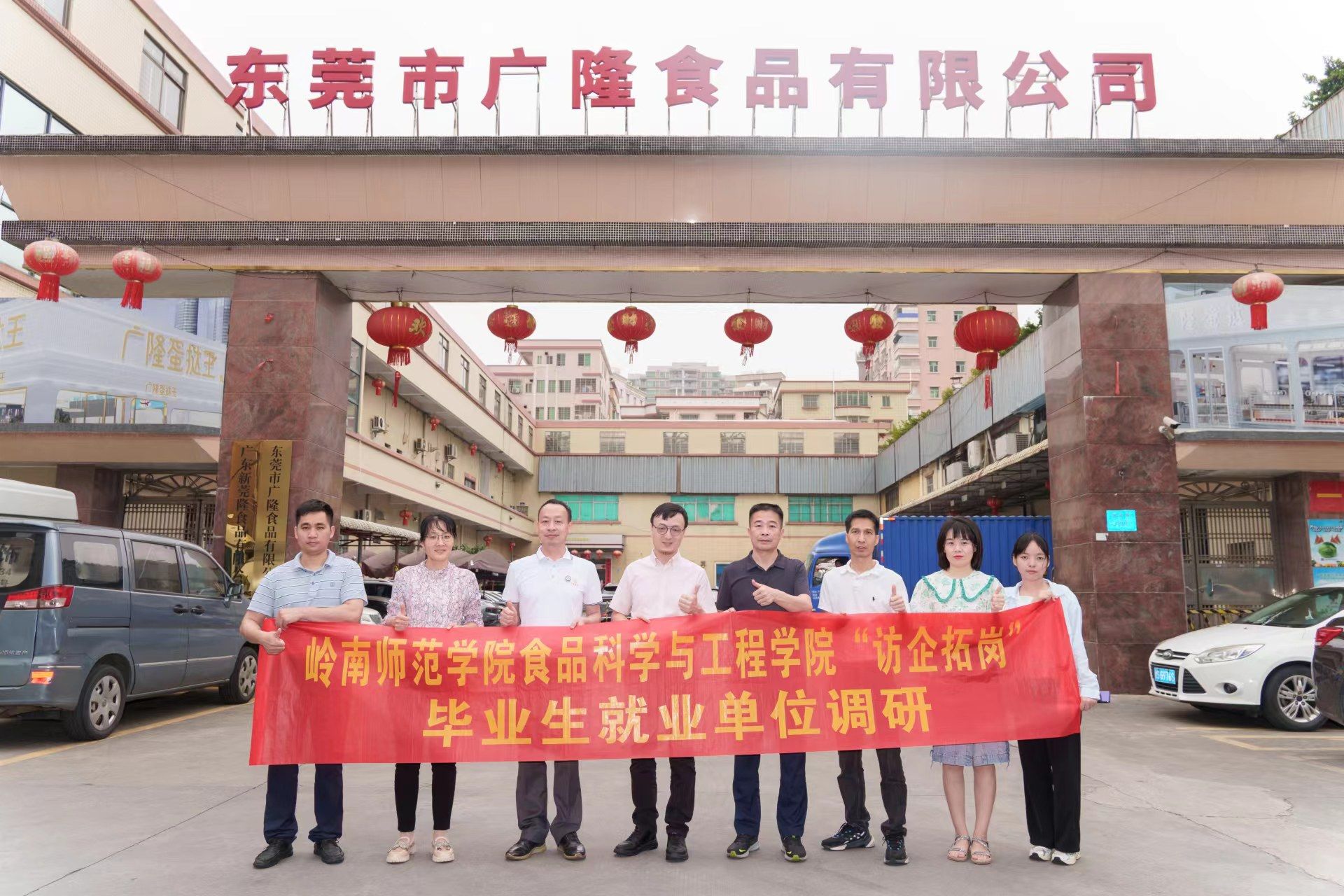为促就业,拓宽就业渠道,进一步开拓学院各专业毕业生就业岗位,4月20日,食品科学与工程学院党委书记邱飞带队,副书记刘淑芬、烹饪与营养教育系系主任马景球、辅导员周晓诗一行四人,赴东莞市广隆食品有限公司开展访企拓岗活动。