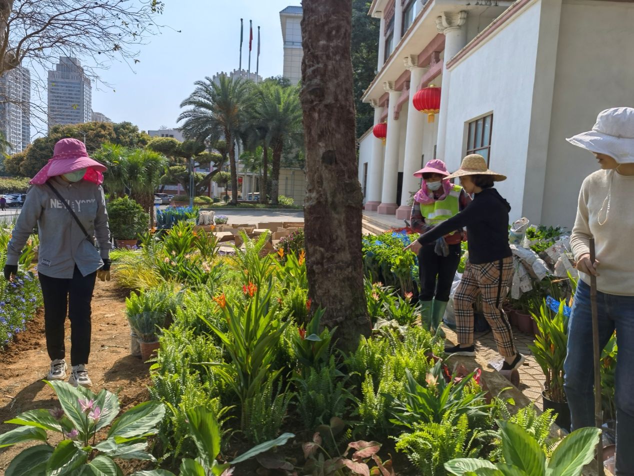 王子凡从2023年2月18日至4月6日的一个半月时间里,在海滨宾馆内部和门口(大门、东门)的重要节点进行花境、花带、花坛、摆花等花卉应用形式的设计、施工和维护工作,共新建、更新花境、花带、花坛30余处。