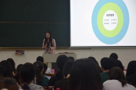 郑学霓以“自我增值与提供价值"为主题向同学们介绍应如何打造教师职业核心竞争力。她首先回顾了十年的职业生涯,与同学们分享在职业生涯中所遇到的困难,并就自身经历总结告诫同学们要勇敢走出自己的舒适圈,向上生长,从而实现自我增值、自我发展,还要学会在成长中不断自洽,提升自我认知。最后,郑学霓向参加此次讲座的准教师们提出建议要“循梦而行,向阳而生;心之所向,素履以往”。