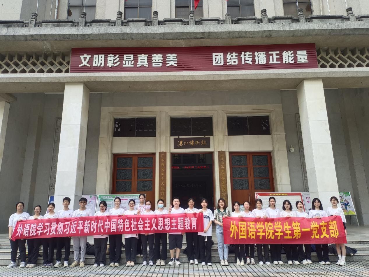 5月21日,外国语学院学生第一党支部赴湛江市博物馆开展学习贯彻习近平新时代中国特色社会主义思想主题教育现场教学,组织开展“领略湛江文化底蕴,传承民族红色基因”的主题党日活动,为党支部入党积极分子、发展对象以及党员同志们提供了一次深入了解湛江红色党史、革命史的文化盛宴。