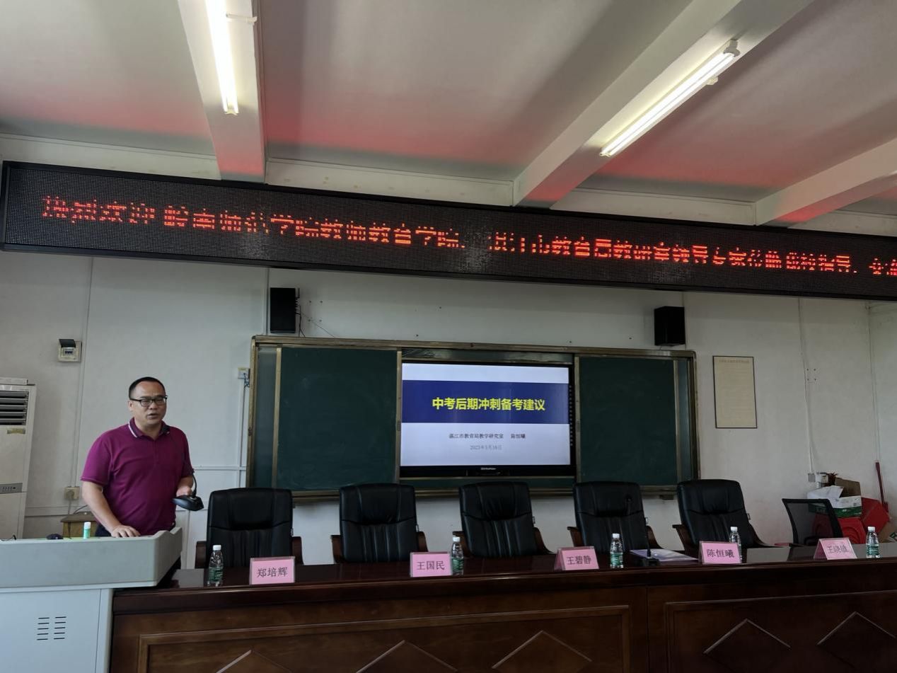 湛江市教育局教研室主任陈恒曦以“中考后期冲刺备考建议”为主题开展专题讲座,从明确考前教育教学主要工作、考前复习规划安排、教师教学策略、不同层次学生复习指导以及学生心理疏导等方面进行深入阐述,具有较强的指导意义。