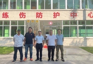 部队训练伤防治中心负责人向王海涛一行介绍了该部队的发展历史,以及军事体能训练、运动康复在部队中的运用与研究现状。王海涛一行在负责人带领下,参观了体能训练房、康复理疗室和心理康复室。在交流过程中,训练伤防治中心负责人表达了与体育科学学院建立长期合作意愿并提出了合作方案。