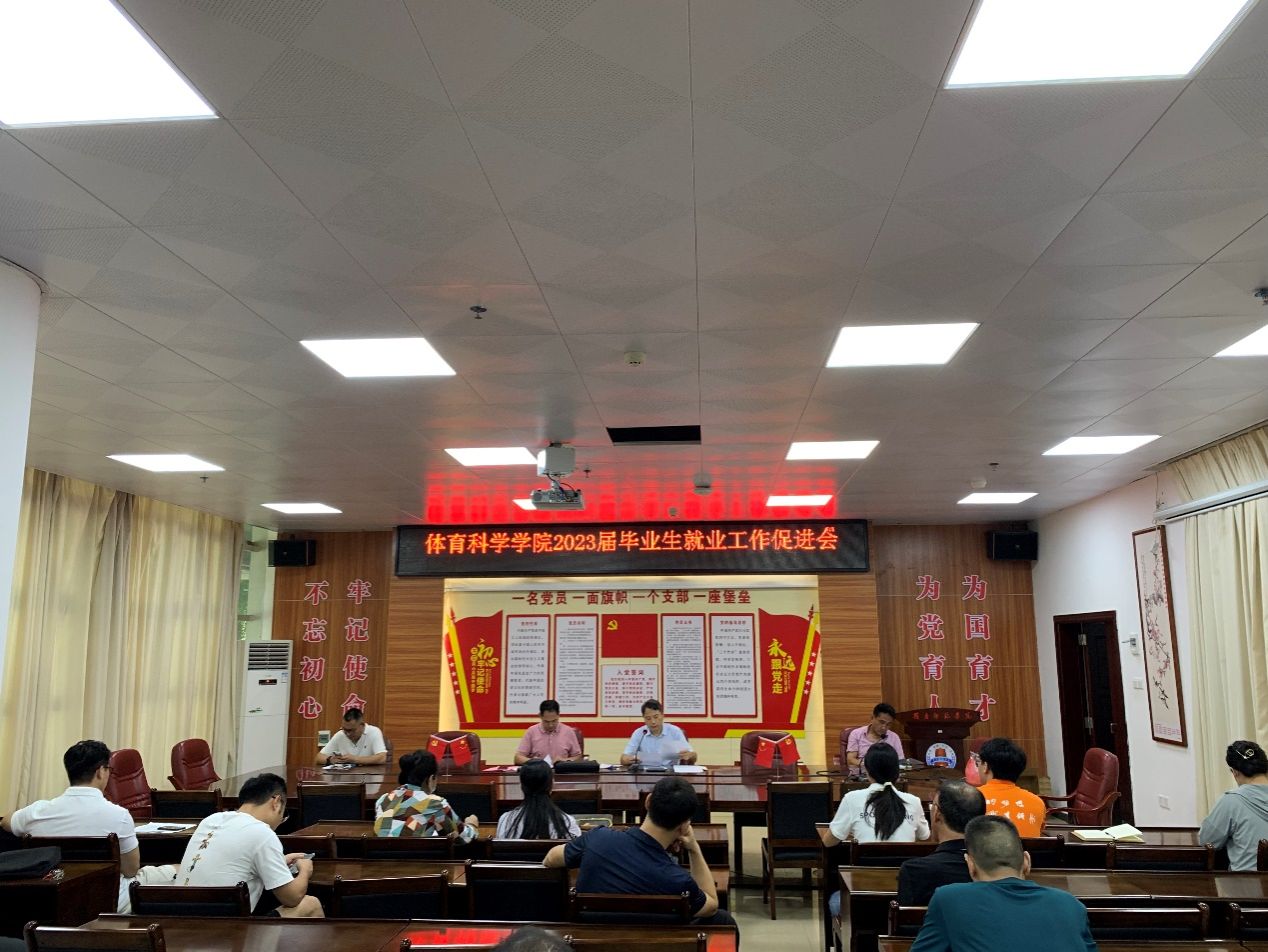 为深入贯彻落实党的二十大精神,推进学习贯彻习近平新时代中国特色社会主义思想主题教育走深走实,体育科学学院于6月1日下午在体育馆会议室召开2023届本科毕业生第四次就业促进会。学院党委书记庞景才、副书记屈云、院长王海涛、副院长梁立启、赵永峰,全体就业工作指导老师参加此次会议。