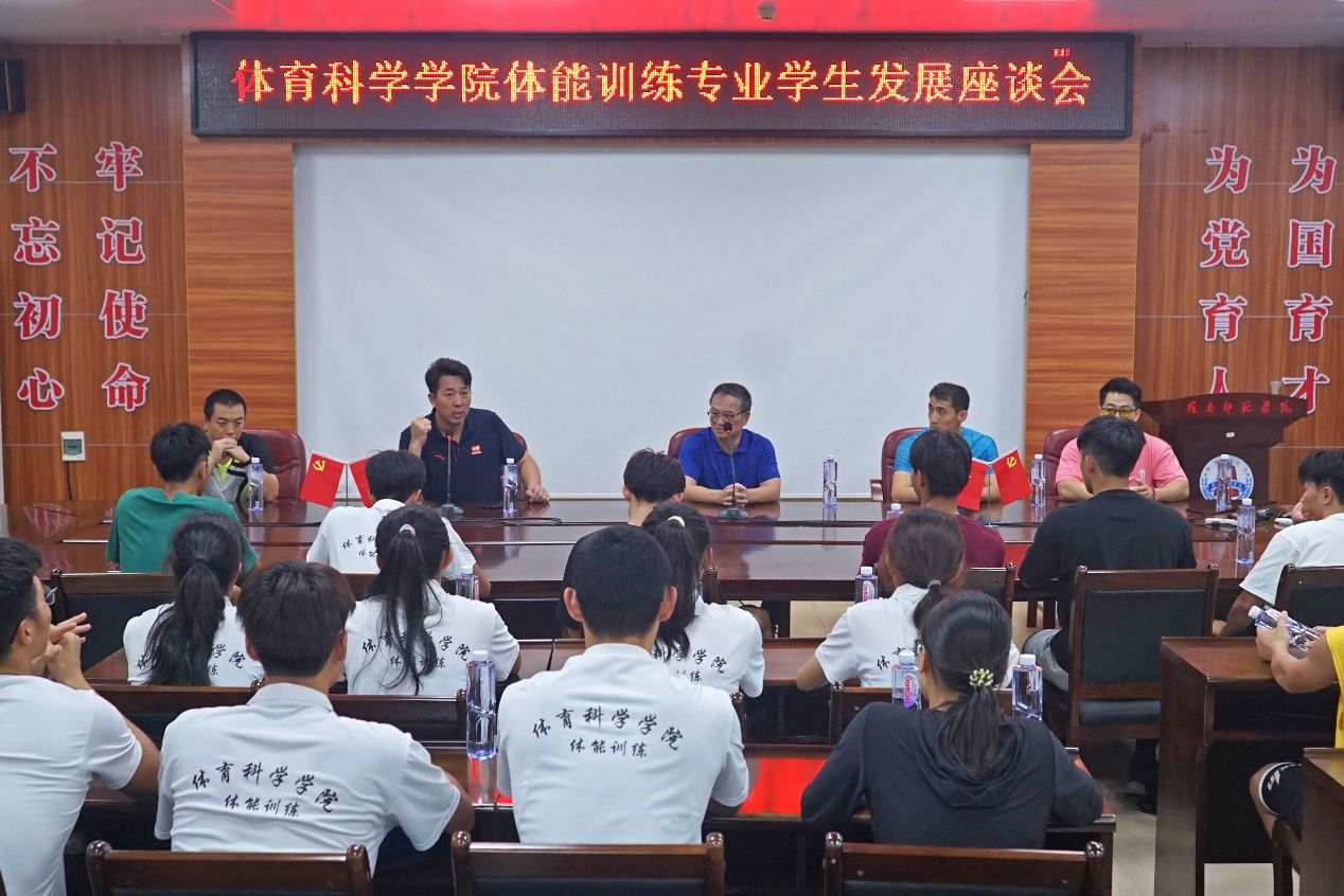 为了给体能训练专业学生提供一个互动交流的平台,5月27日晚,成都体育学院博士生导师、国家级体能训练师杨世勇教授应邀参加体育科学学院体能训练专业发展座谈会。体能训练系主任于贵身,李昊亭、李鲁和于志刚老师及体能训练系全体学生参加此次会议。