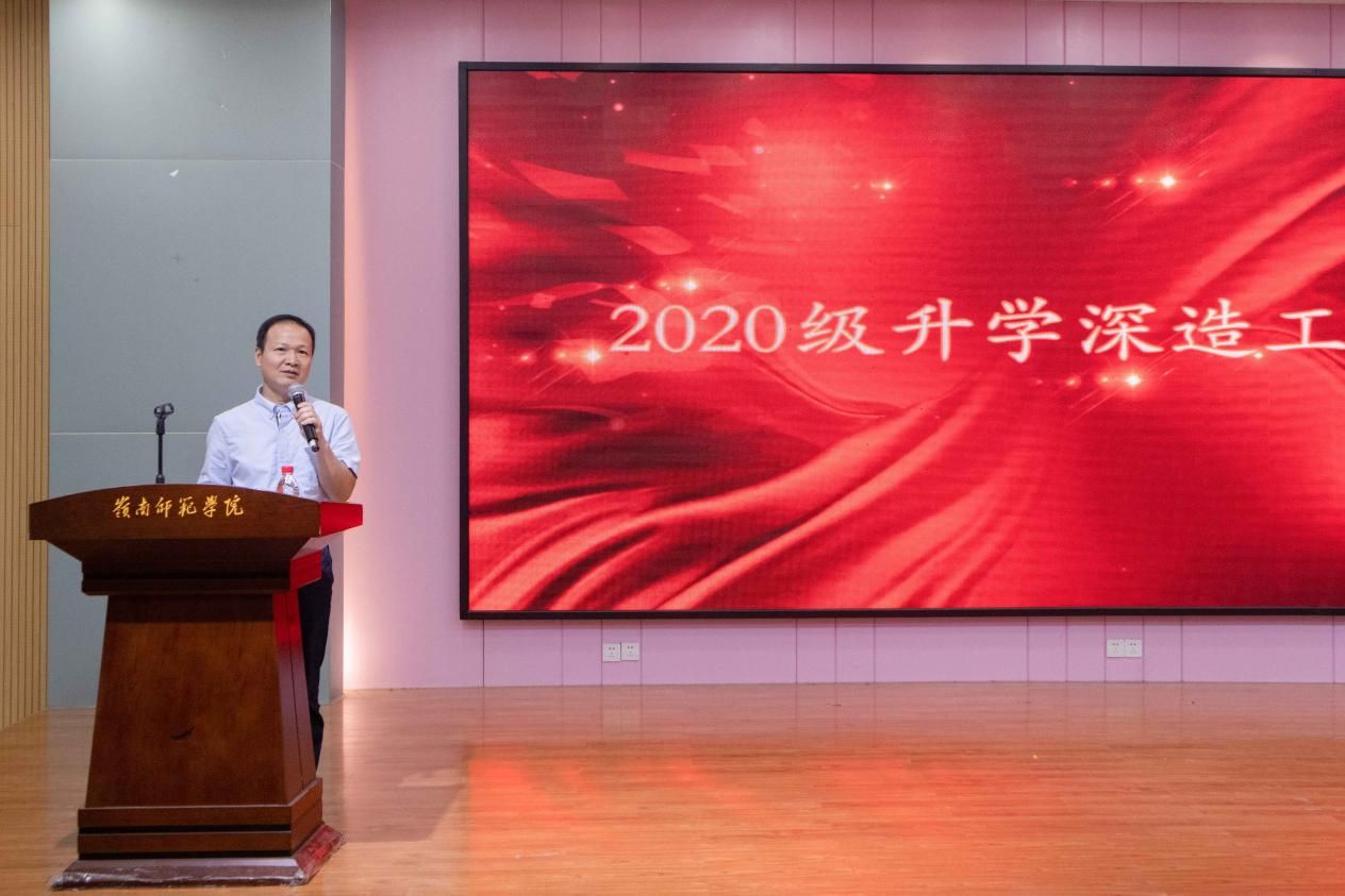 刘鑫淼围绕为什么坚定升学深造作2020级升学深造工作动员。首先,他指出升学深造不仅是同学们在大学期间通过自身努力改变命运、改变人生的重要机会,也是同学们更好发现自我,确证自我的一场人生亲征。其次,他表示升学深造一场锻炼意志,提升自我、超越自我,最终百炼成钢,淬火成金的修炼。最后,他强调,升学深造是一个艰苦的过程,也是一个心智磨砺的过程,希望20级升学深造学子积极突破自我、挑战自我、完善自我,在追逐升学深造的征程上坚定初心,再创新辉煌。