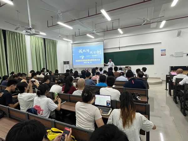 刘金祥向与会师生详细介绍了第九届中国国际“互联网+”大学生创新创业大赛要览与备赛,包括大赛赛程简介、相关重要文件通报、商业计划书写作要领、项目团队建设、网评关注事项、路演环节注意事项等。整场备赛培训干货满满,涵盖了备赛全过程的方方面面,非常详尽,其中不乏PPT制作与封面设计等细节点,与会师生受益匪浅。创新创业教育学院副院长张洪军特别对项目名称的打磨提出意见,建议主副标题结合,主标题吸引眼球,副标题体现项目价值主张。