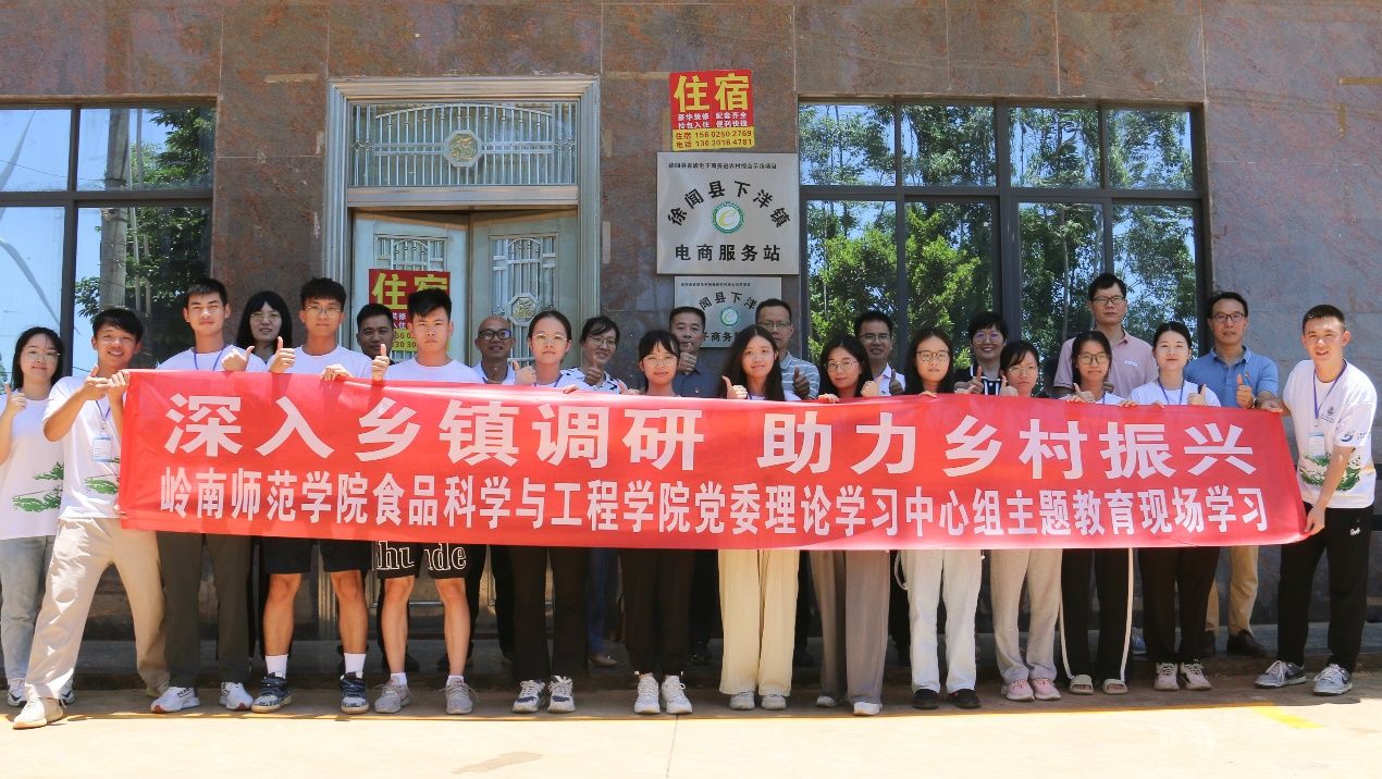 为深入乡村调研,助力“百县千镇万村工程”,全面推进学习贯彻习近平新时代中国特色社会主义思想主题教育走深走实,食品科学与工程学院党委理论学习中心组赴学校帮扶单位徐闻县下洋镇开展主题党日活动,出席本次活动的有食品科学与工程学院党委理论学习中心组成员,驻镇帮扶队成员李达主任、张迪江科长以及食品院“赤咤丰耘”社会实践队成员。